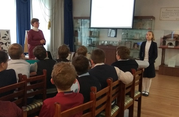 Изучая литературу XVIII века, учащиеся 5б класса знакомились с поэтическим творчеством М.В. Ломоносова. На уроке в музее они вспомнили основные этапы жизни великого учёного, получили представление о его открытиях в различных областях науки. На примере стихотворения «Случились вместе два астронома…», которое ученики читали наизусть, они узнали, как Ломоносов в поэтической форме говорил о важных вопросах мироздания.