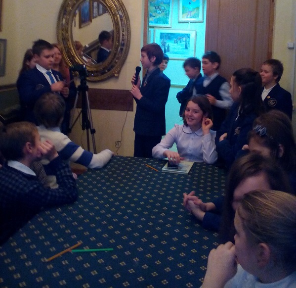 23 января в музее «Пушкинский уголок» была проведена тематическая экскурсия для учеников 5-В класса. Ребята с удовольствием осмотрели экспозиции музея, выполняя задания квеста, стали участниками музейной мини-олимпиады, познакомились с дружелюбным Мифоликом. По окончании экскурсии пятиклассники давали эмоциональное интервью о своих впечатлениях юным исследователям-шестиклассникам Пушкинского дома – Поздняковой Софии и Сидоренко Льву.