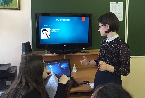 Гаврилова Дария представила работу на тему: «Связь уровня стрессоустойчивости и психологических характеристик личности» и познакомила своих одноклассников с биологическими и физиологическими основами стресса, рассказала о болезнях стресса, его пользе и доказала, что существенное влияние на характер развития стресса, глубину и последствия его переживания оказывают индивидуальные особенности человека: волевые качества, оптимизм, самообладание и навыки саморегуляции.